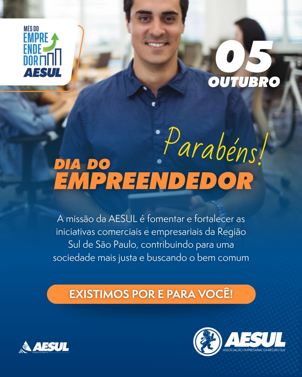 No último dia 5 de outubro, foi comemorado o Dia do Empreendedor — uma data que reconhece a coragem, a visão e a determinação de quem transforma ideias em negócios e desafios em oportunidades. A AESUL (Associação Empresarial da Região Sul) aproveitou a ocasião para parabenizar todos os empreendedores que atuam com dedicação e propósito, impulsionando o crescimento econômico e social da região.