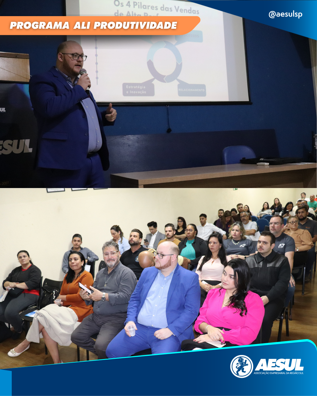 No dia 11 de setembro de 2025, a AESUL e o SEBRAE promoveram o lançamento do Programa ALI Produtividade, com o tema “Da oportunidade à venda: O segredo da geração de demandas”, voltado para empreendedores que desejam alavancar seus negócios.